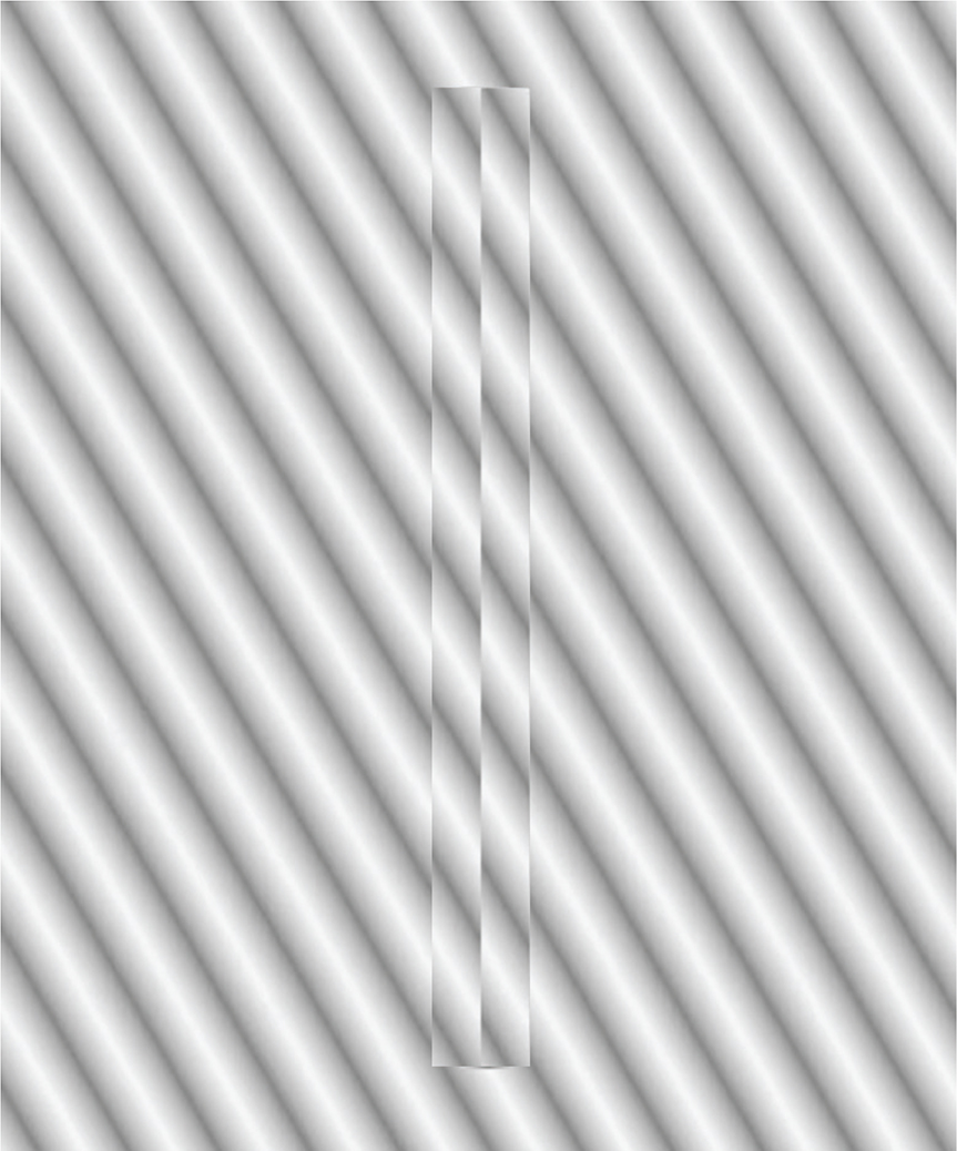 Movie 2. Wide bar contrast reversed. The bar is defined by the contrast reversal revealed at its edges. Here with a very wide bar and a moving texture of an oblique square wave, no doubling is seen. Instead, some viewers may see a salient edge, making a frame around the entire bar.
