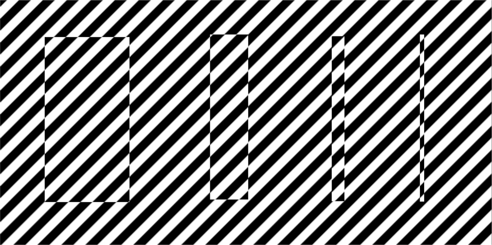 Fig. 2. The vertical contours are widely spaced on the left, closer together on the right. Line doubling is most evident on the third bar from the left whose width is similar to the width of the grating’s bars. In the widest bar on the left, the two edges are clearly seen while viewing it peripherally, giving an impression of two vertical strips without any impression that the whole bar is doubled.
