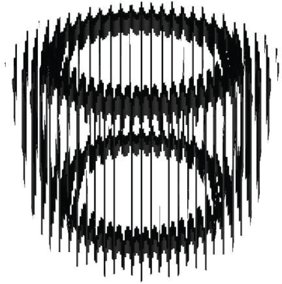 Fig. 1. A transparent overlay of vertical stripes applied to this image and moved left-to-right will yield an animation of a spinning cube. The periodic vertical sampling of the constituent frames in this image is evident in the striped structure of this base image. (Attribution: Pixelmaniac pictures, Public domain, via Wikimedia Commons).
